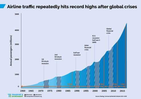 Les 15 milliards d’euros d’aides de l’Etat sont une fuite en avant dans le maintien à bout de bras de la filière aéronautique alors qu’il faut organiser sa décroissance. Faute d’être anticipée et organisée, celle-ci risque de s’imposer au secteur qui continue à faire preuve d’aveuglement en misant sur une reprise à l’identique puis le doublement du trafic passager dans les prochaines années.