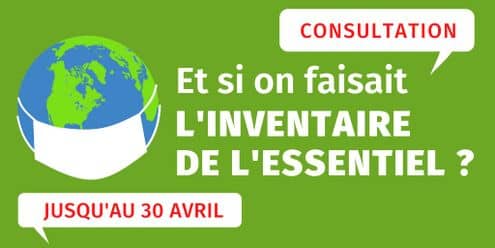 La consultation « Et si on faisait l’inventaire de l’essentiel ? » a déjà reçu de nombreuses réponses depuis sa mise en ligne. Nous avons besoin d’en recueillir encore d’avantage ! Elle est ouverte jusqu’au 30 avril.