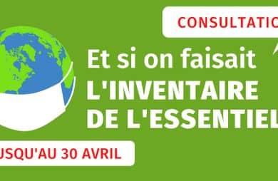La consultation « Et si on faisait l’inventaire de l’essentiel ? » a déjà reçu de nombreuses réponses depuis sa mise en ligne. Nous avons besoin d’en recueillir encore d’avantage ! Elle est ouverte jusqu’au 30 avril.