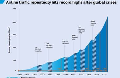 Les 15 milliards d’euros d’aides de l’Etat sont une fuite en avant dans le maintien à bout de bras de la filière aéronautique alors qu’il faut organiser sa décroissance. Faute d’être anticipée et organisée, celle-ci risque de s’imposer au secteur qui continue à faire preuve d’aveuglement en misant sur une reprise à l’identique puis le doublement du trafic passager dans les prochaines années.