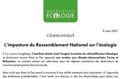 Sur la forme, personne n’est dupe de la conférence de presse de ce jour. L’extrême-droite est aux abonnés absents de tous les combats pour l’écologie. Les députés RN n’ont déposé par exemple aucun amendement sur le projet de loi Climat actuellement en discussion.