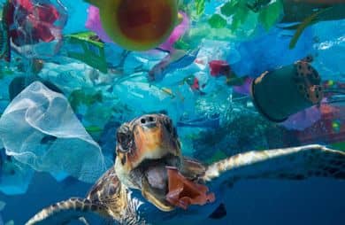 Mais également les rejets de déchets plastique qui, selon de nombreux rapports, est la seconde cause la plus grave de la dégradation des océans. L’utilisation croissante des plastiques à usage unique dans le monde ou le mauvais traitement de ceux-ci a pour conséquence le fait que certains de nos déchets se retrouvent dans les milieux marins. Et ce phénomène est mondialisé : la France, les États-Unis… exportent tous les ans des tonnes de déchets plastiques en Malaisie où, faute d’être traitée, une partie est charriée vers les océans. Selon Greenpeace, plus de 10 millions de tonnes de plastique se retrouvent chaque année dans les océans. Ces détritus s’accumulent, formant des centaines d’îles, dont la plus grande se situe dans l’océan Pacifique et couvre une surface aussi grande que l’Égypte : le « 6ème continent ». Ces milliards de déchets se décomposent peu à peu en microplastiques ingérés par la faune, étouffant poissons et oiseaux. La pollution des océans est source de nombreuses inquiétudes quant à la possibilité d’ingérer des poissons contaminés : actuellement nous ingérons déjà l’équivalent d’une carte de bleu (5g) de plastique par semaine selon le WWF.
