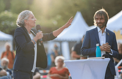 Intervention de Cedric Villani et Delphine Batho et échanges avec les militantes et militants, lors des journées d’été des écologistes à Poitiers le 20 août 2021.