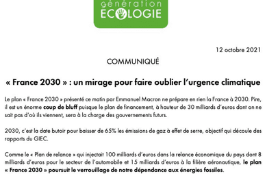 Comme le ”plan de relance” qui injectait 100 milliards d’euros dans la relance économique du pays dont 8 milliards d’euros pour le secteur de l’automobile et 15 milliards d’euros à la filière aéronautique, le plan “France 2030” poursuit le verrouillage de notre dépendance aux énergies fossiles.