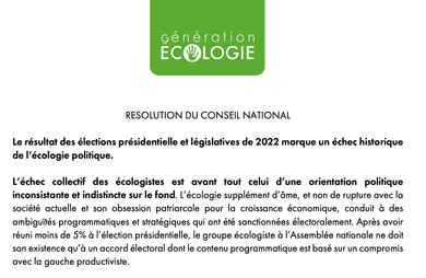 Téléchargez la résolution adoptée par le conseil national le 23 juillet 2022. Résolution du conseil national (PDF, 71.05 Ko)