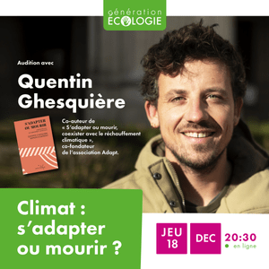 Nous avons bien pris note de votre inscription à l’audition de Quentin Ghesquière, co-auteur de « S’adapter ou mourir – Coexister avec le réchauffement climatique » :