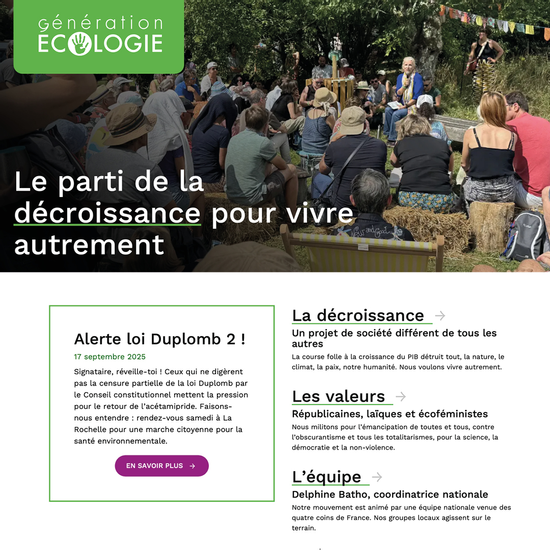 La décroissance est notre drapeau, nous avions à cœur de créer un espace en cohérence avec nos valeurs. Ce site nous ressemble : il met en valeur nos prises de positions, nos actions, la diversité de nos adhérentes et adhérents.