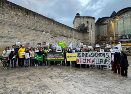 Lundi 15 décembre, les militantes et militants de Génération Écologie Gironde se sont mobilisés à Bordeaux, pour dénoncer le projet d’élevage industriel de saumons Pure Salmon au Verdon (33). Gaëlle Ricquebourg est intervenue en notre nom et a rappelé que le débat se poursuit : faites entendre votre voix dans l’enquête publique ouverte jusqu’au 19 janvier !